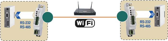 Прозрачный канал обмена данными между двумя (точка-точка) удаленными объектами (RS-232/RS-485), находящимися в зоне покрытия Wi-Fi локальной сети предприятия.